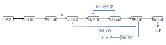 4)膜生物反应器(Membrane Bio-Reactor)简称MBR,是二十世纪末发展起来的新技术。它是膜分离技术和生物技术的有机结合。它不同于活性污泥法,不使用沉淀池进行固液分离,而是使用微滤膜分离技术取代传统活性污泥法的沉淀池和常规过滤单元,使水力停留时间(HRT)和泥龄(SRT)完全分离。因此具有高效固液分离性能,同时利用膜的特性,使活性污泥不随出水流失,在生化池中形成8000—12000mg/L超高浓度的活性污泥浓度,使污染物分解彻底,因此出水水质良好、稳定、出水细菌、悬浮物和浊度接近于零,并可截留粪大肠菌等生物性污染物,处理后的水可直接回用。